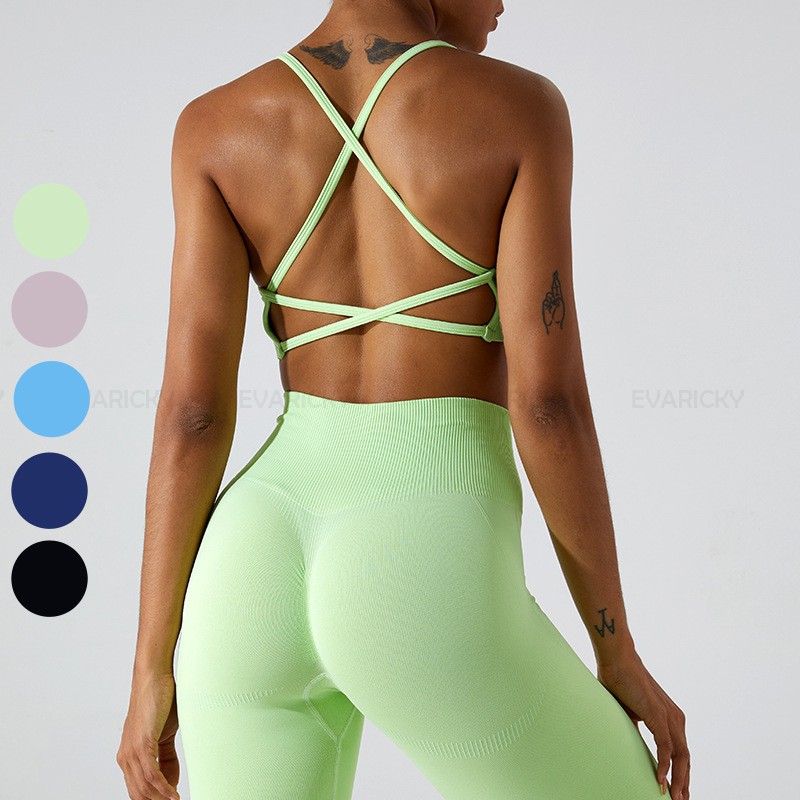 แฟชั่นเปิดด้านหลังพืชครอป Top สวมใส่ชุดชั้นในผู้หญิง โลโก้แบบกำหนดเอง Sport Strappy Shockproof Criss Cross Bra สำหรับผู้หญิง Evaricky เป็นผู้ผลิตและซัพพลายเออร์จีนซึ่งส่วนใหญ่ผลิตชุดชั้นในกีฬาเปิดกลับพร้อมประสบการณ์หลายปี